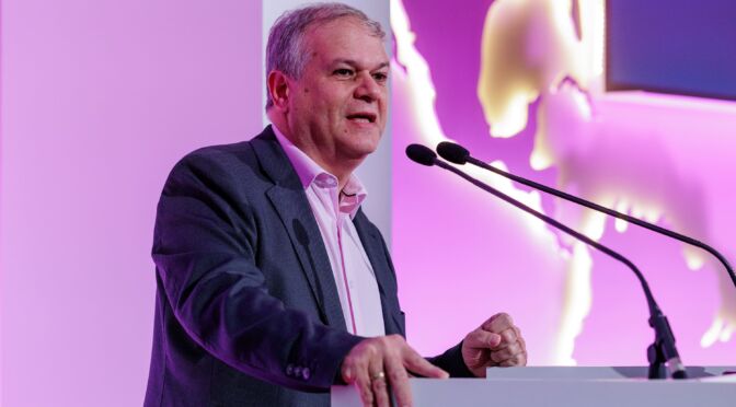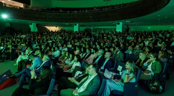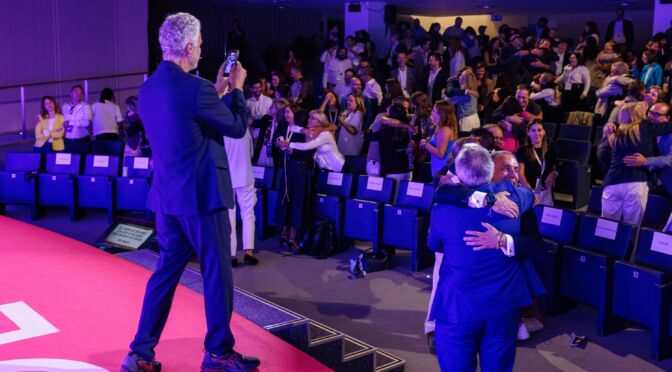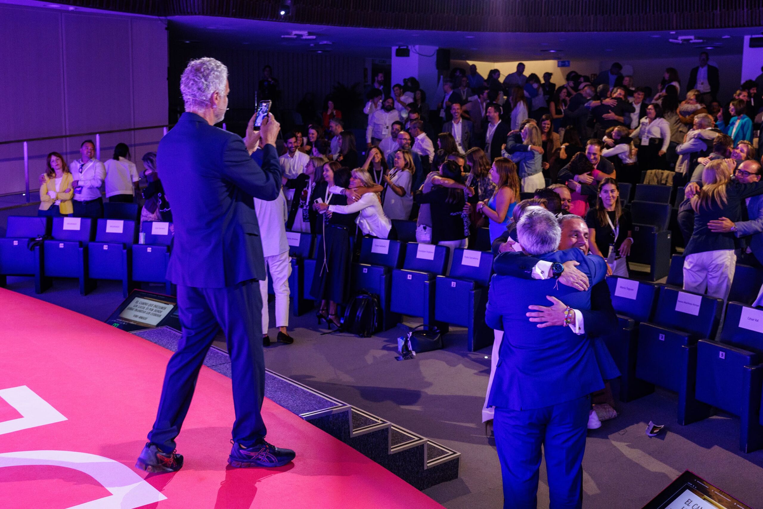 Andy Stalman invitó a reflexionar sobre la importancia de medir el return on love (ROL) más que el return on investment (ROI), subrayando el valor humano en las relaciones entre marcas y personas. Su intervención culminó con un momento de conexión, en el que animó a los asistentes a abrazarse y a participar en un juego a modo de espejos proyectado en pantalla, generando un ambiente de alegría y complicidad que contagió a todo el auditorio.