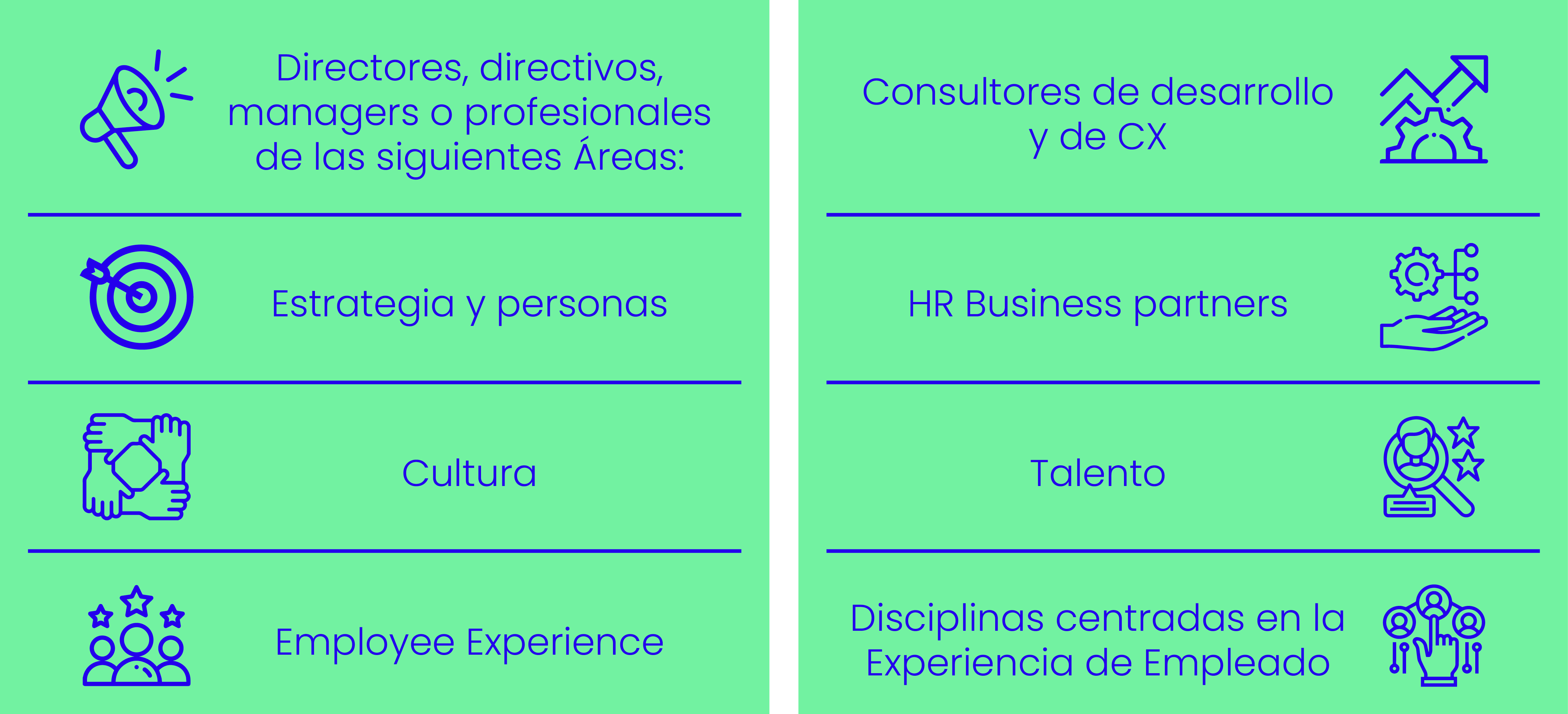 La formación, 100% online, estará impartida por expertos en EX y te ayudará a conocer y profundizar en la disciplina de Experiencia de Empleado, desde el concepto más amplio, hasta las herramientas y metodologías empleadas para la implantación con éxito de esta estrategia de negocio.