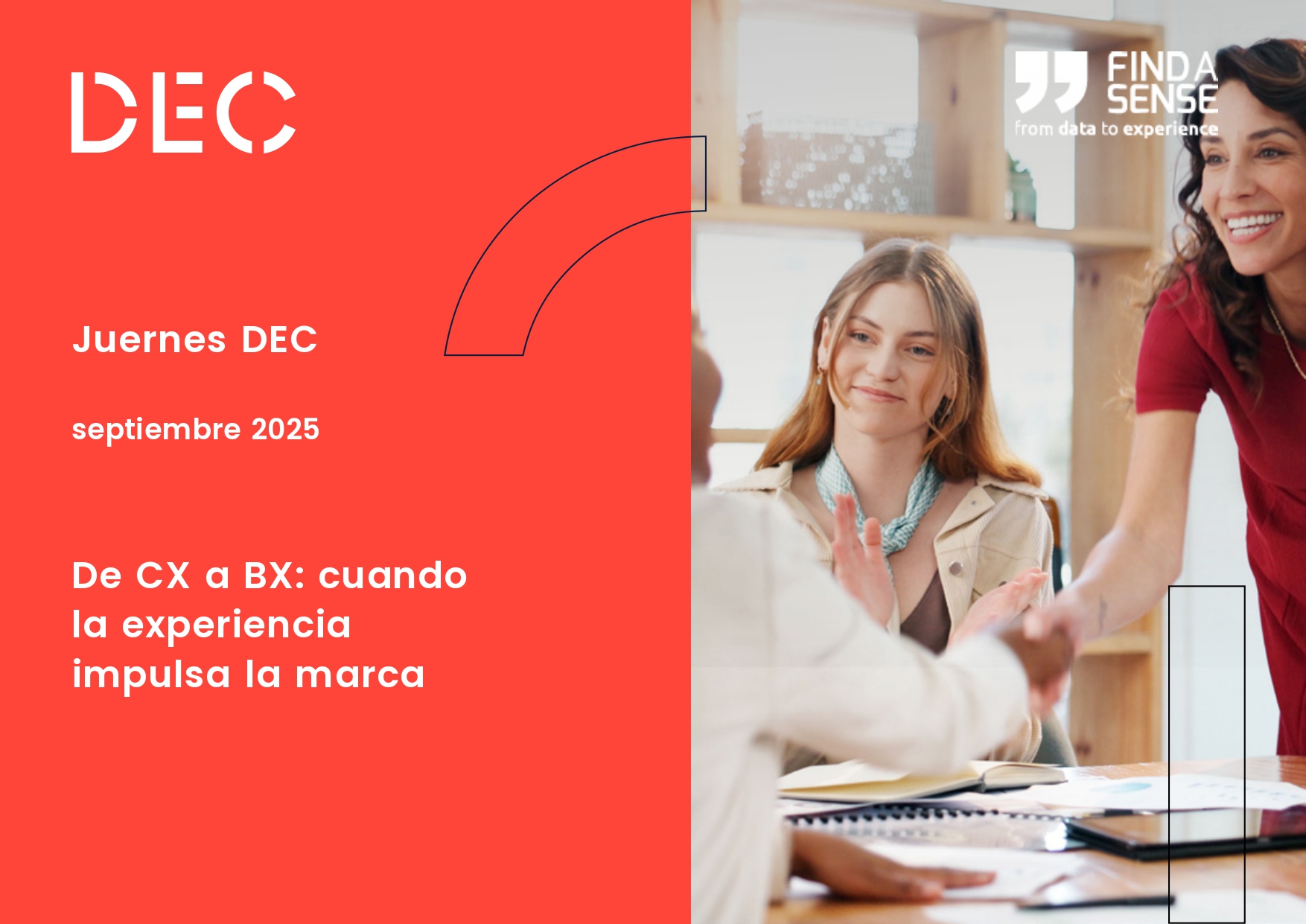 DEC, a través de su formato Juernes DEC, con el patrocinio de Findasense y la colaboración de TP, ha reunido a diferentes expertos en Experiencia de Cliente quienes han tratado el tema “de CX a BX: cuando la experiencia impulsa la marca”.